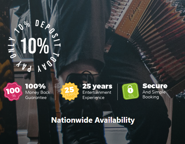 Agency specialising in traditional Irish musicians and bands for ceremonies drinks and lively dance floors nationwide.